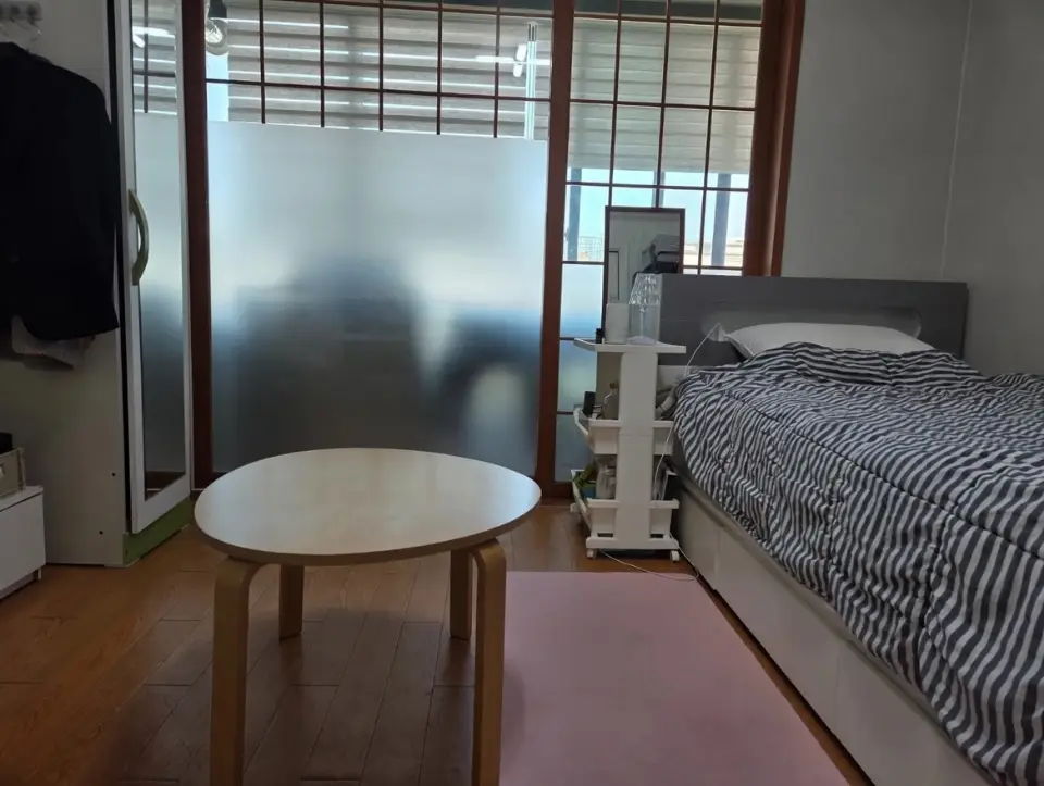 이 단독주택은 분리형 원룸 구조로, 특히 주방과 화장실 공간이 넓게 확보되어 있습니다. 주방이 현관과 분리되어 있음에도 불구하고 공간 활용도가 높아 요리 및 생활 동선이 편리합니다. 내부에는 세탁기, 냉장고, 에어컨, 가스레인지, 침대 등 기본적인 생활 옵션이 완비되어 있어 입주 시 별도의 가구 구매 부담을 덜 수 있습니다.